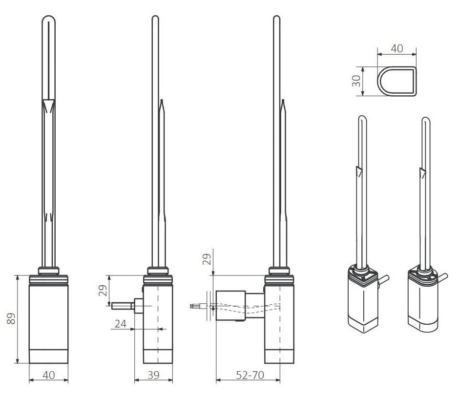 UWAGA - należy sprawdzić rozmiar pionowego kolektora w grzejniku - aby być dopasowanym do tej grzałki ONE profil D musi mieć wymiar 30 x 40 mm