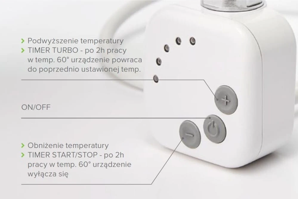 ✅ regulacja temperatury: 4 poziomy w zakresie 30-60 C