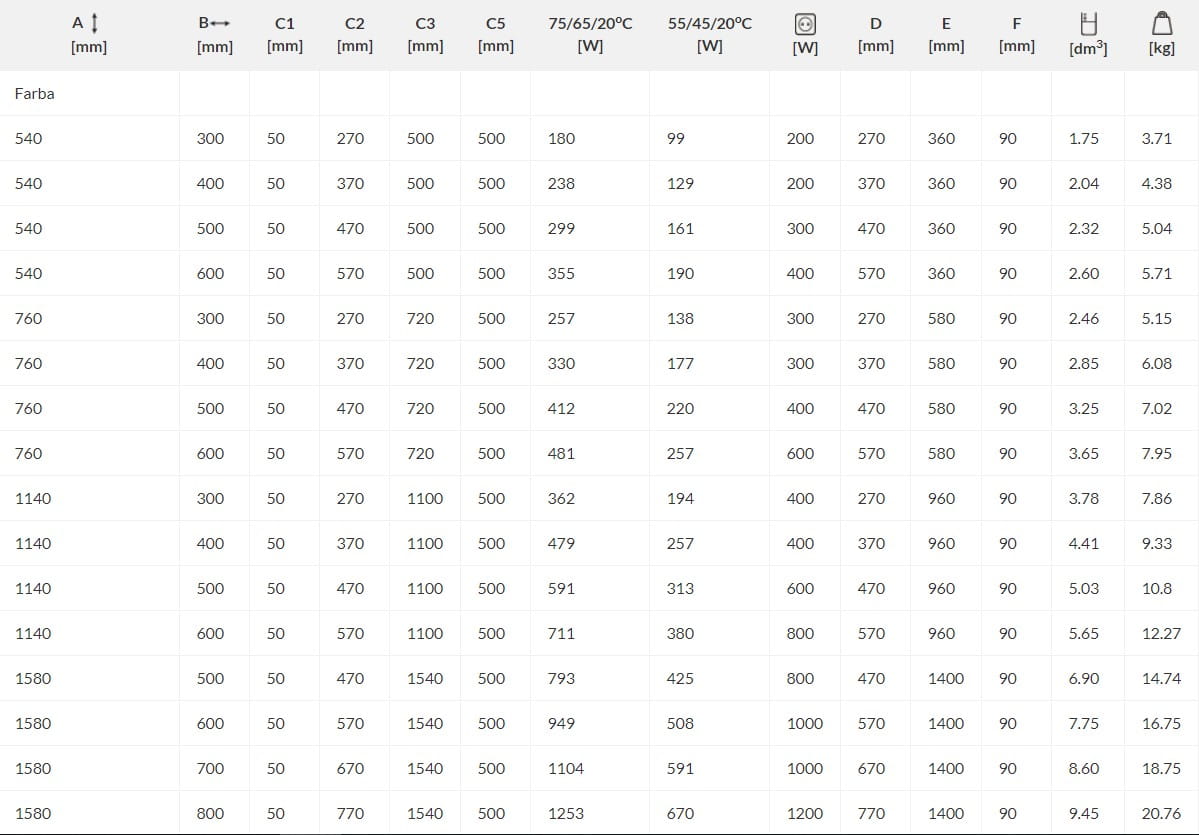 Pozostałe wymiary i rodzaje grzejników ALEX znajdziesz tutaj