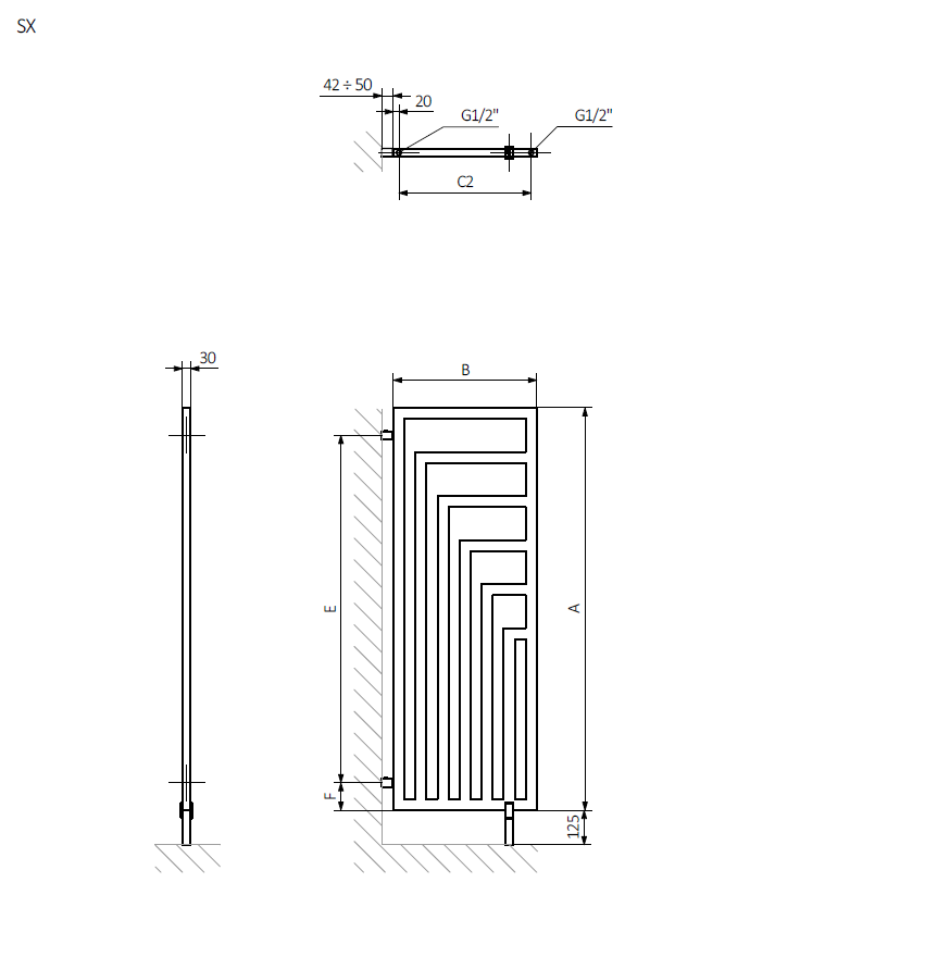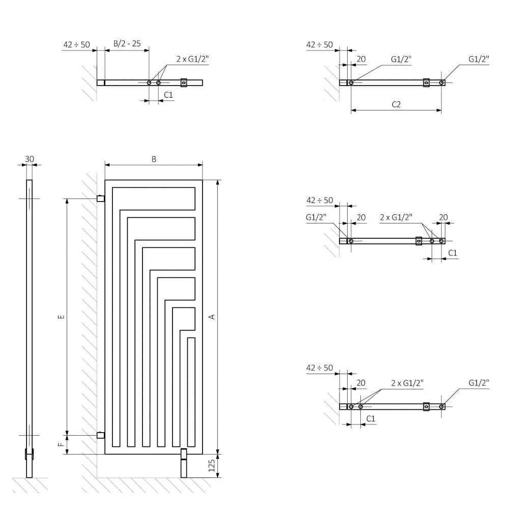 Grzejnik ANGUS DW 130 x 44 jako ścianka działowa