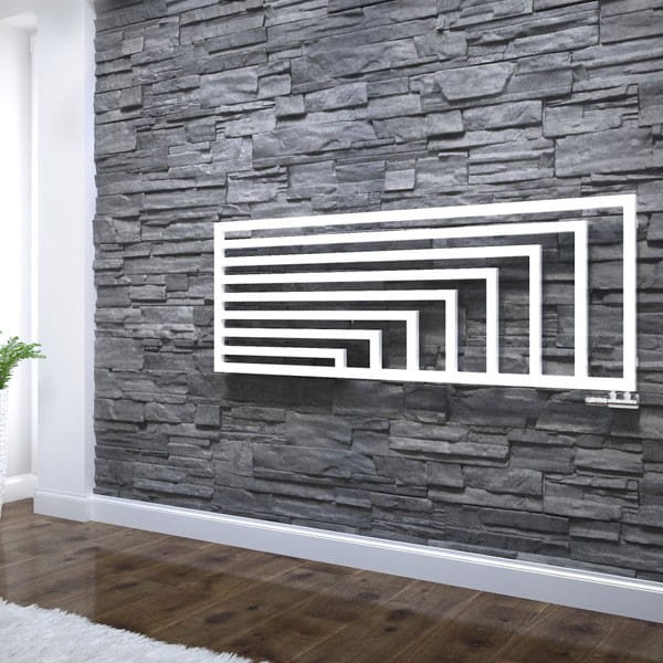 Bryła grzejnika Angus bazuje na oryginalnym, geometrycznym układzie rur. Model ten został opracowany w wersji poziomej (H) i pionowej (V). Wersja pionowa dostępna jest w dwóch wariantach mocowania, jako ażurowa ściana działowa (DW) oraz w wersji przylegającej do ściany (V).