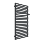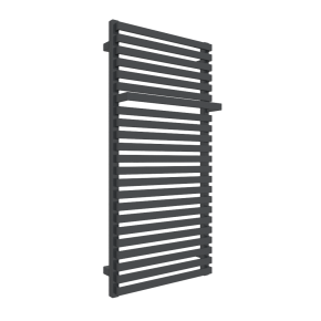 Geometryczna bryła zbudowana z płaskich rurek łączących kwadratowe kolektory. W górnej sekcji jedna z rurek została wysunięta tworząc funkcjonalny wieszak na ręczniki. Model dobrze sprawdzi się w nowoczesnych minimalistycznych przestrzeniach łazienek i kuchni.