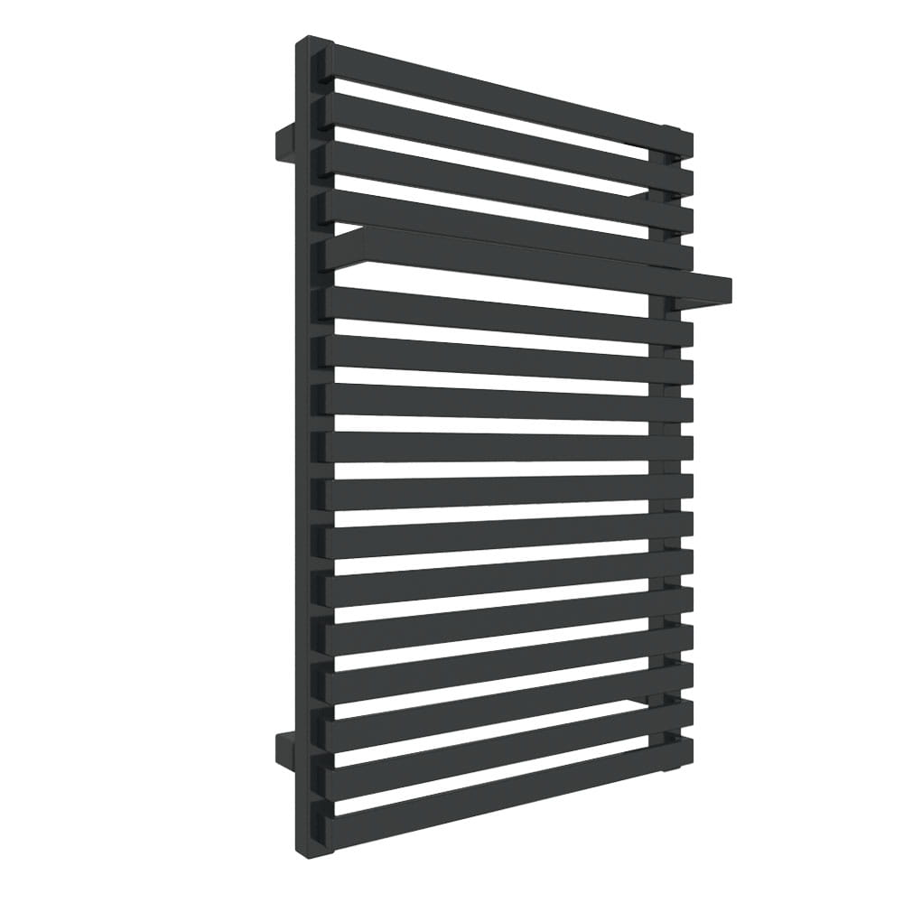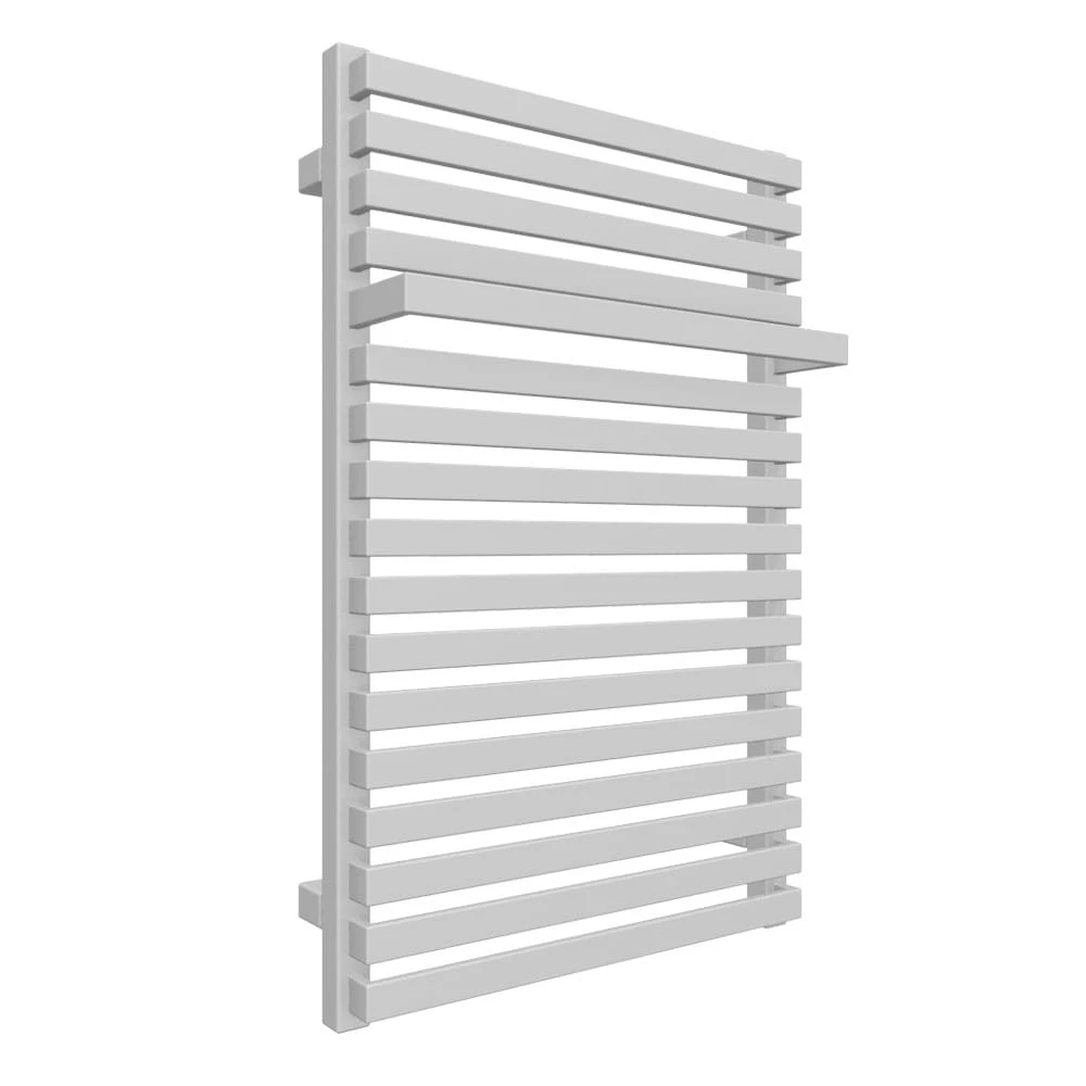 Geometryczna bryła zbudowana z płaskich rurek łączących kwadratowe kolektory. W górnej sekcji jedna z rurek została wysunięta tworząc funkcjonalny wieszak na ręczniki. Model dobrze sprawdzi się w nowoczesnych minimalistycznych przestrzeniach łazienek i kuchni.