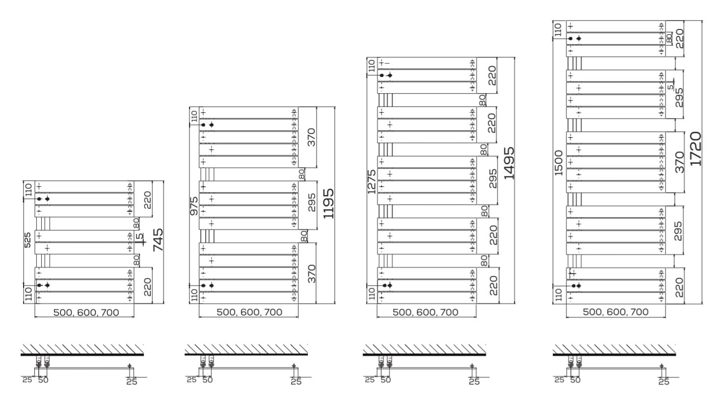 - kolektory pionowe okrągłe o przekroju Ø 30 mm