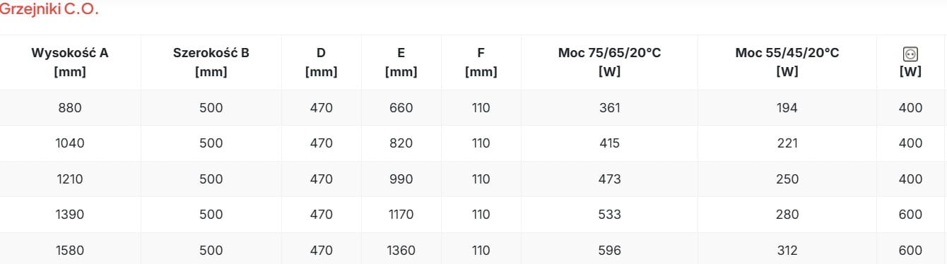 • Zasilanie: wodne (C.O.), możliwość zastosowania grzałki