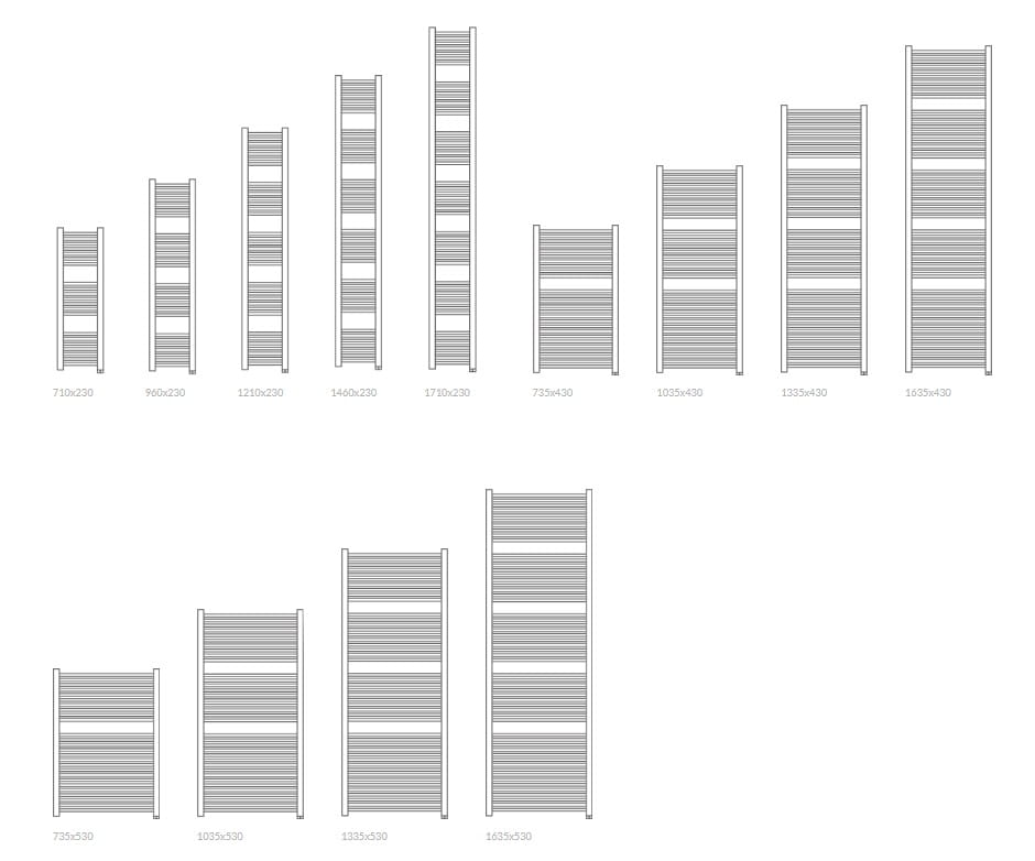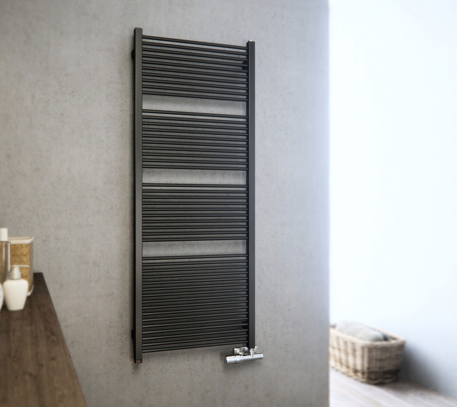 Prosty grzejnik łazienkowy wyróżniający się rytmicznie ułożonymi sekcjami cienkich rurek. Rozbudowany typoszereg obejmujący także szerokość 23 cm, umożliwia łatwe dopasowanie nawet do niewielkich łazienek.