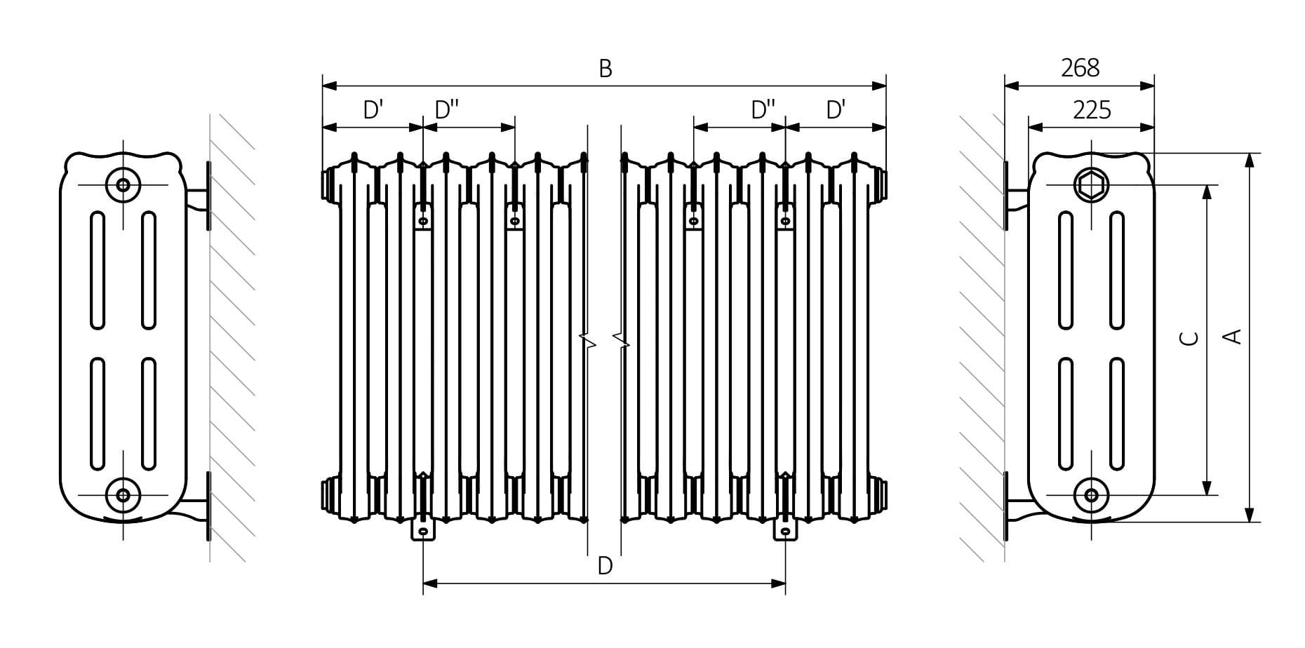 Grzejnik OXFORD wiszący 66 x 52 żeliwny zdobiony / 6 żeberek