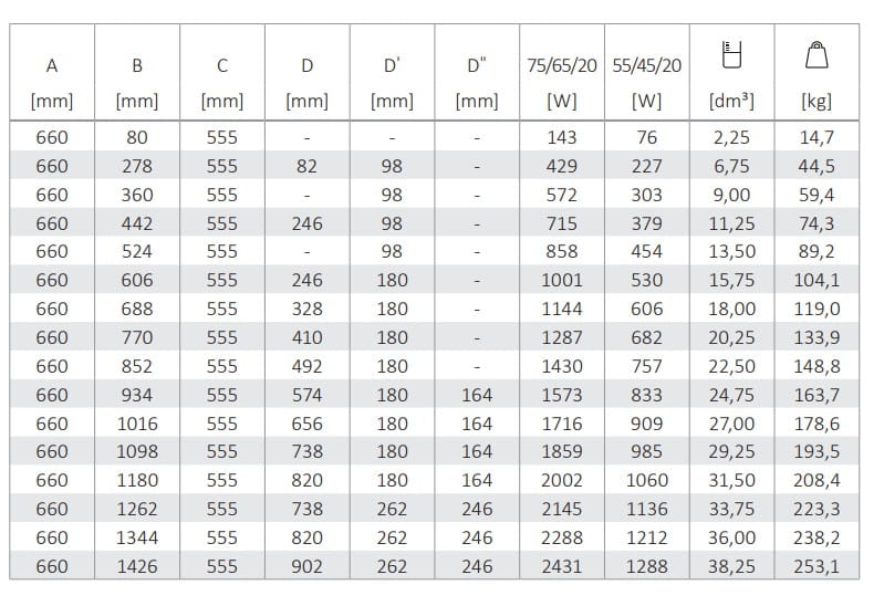 ✅ moc grzewcza zależnie od rozmiaru od 430 do 2430 W