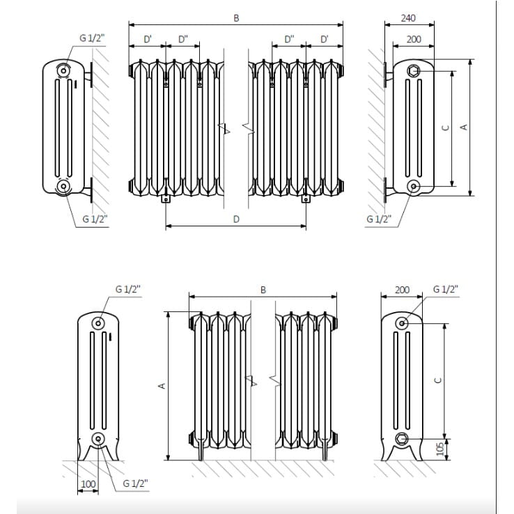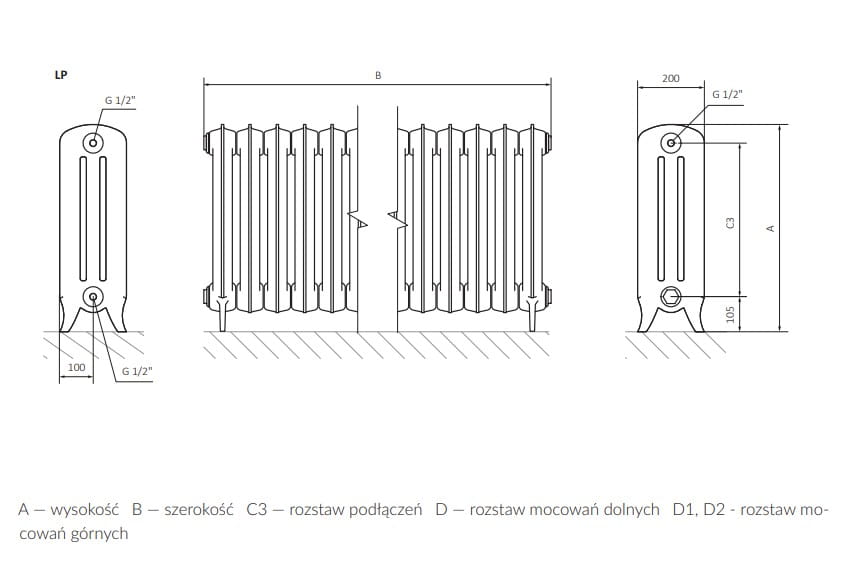 UWAGA - w przypadku kiedy grzejnik jest dłuższy niż 13 żeberek (1098 mm) wysyłany jest w częściach. Do zamontowania grzejnika konieczne jest użycie klucza. Na potrzeby klienta istnieje możliwość wypożyczenia klucza za kaucją.