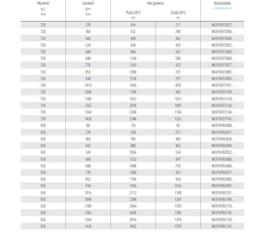Dane techniczne grzejników