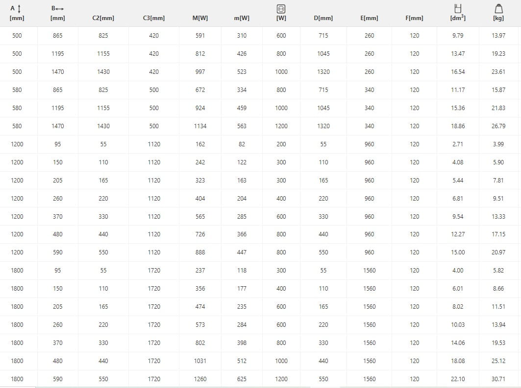 - Wysokość grzejnika [cm] 120