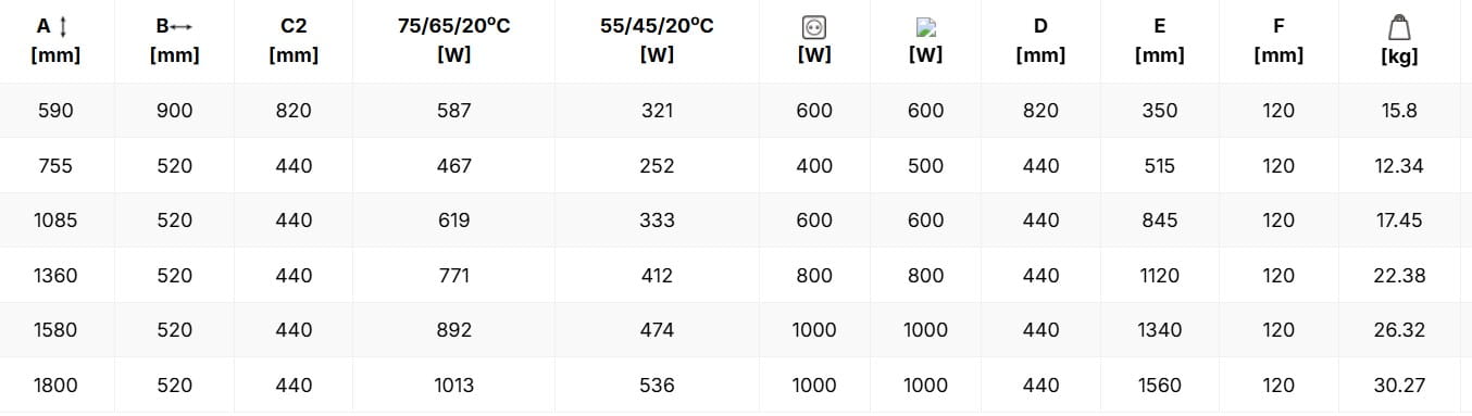 Moc: 587 W (75/65/20°C) | 321 W (55/45/20°C)