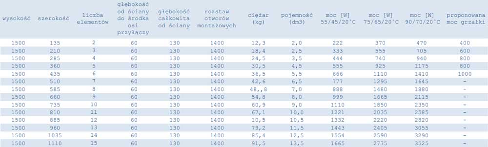 Dane techniczne grzejników