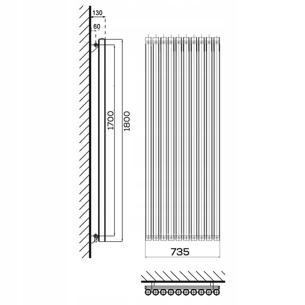 Grzejnik WULKAN 180 x 74 wysoki, wąski kaloryfer do pokoju, łazienki