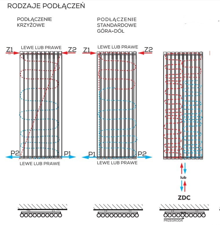 ✅ standardowo ma podłączenie boczne ale możliwe jest też dolne zespolone