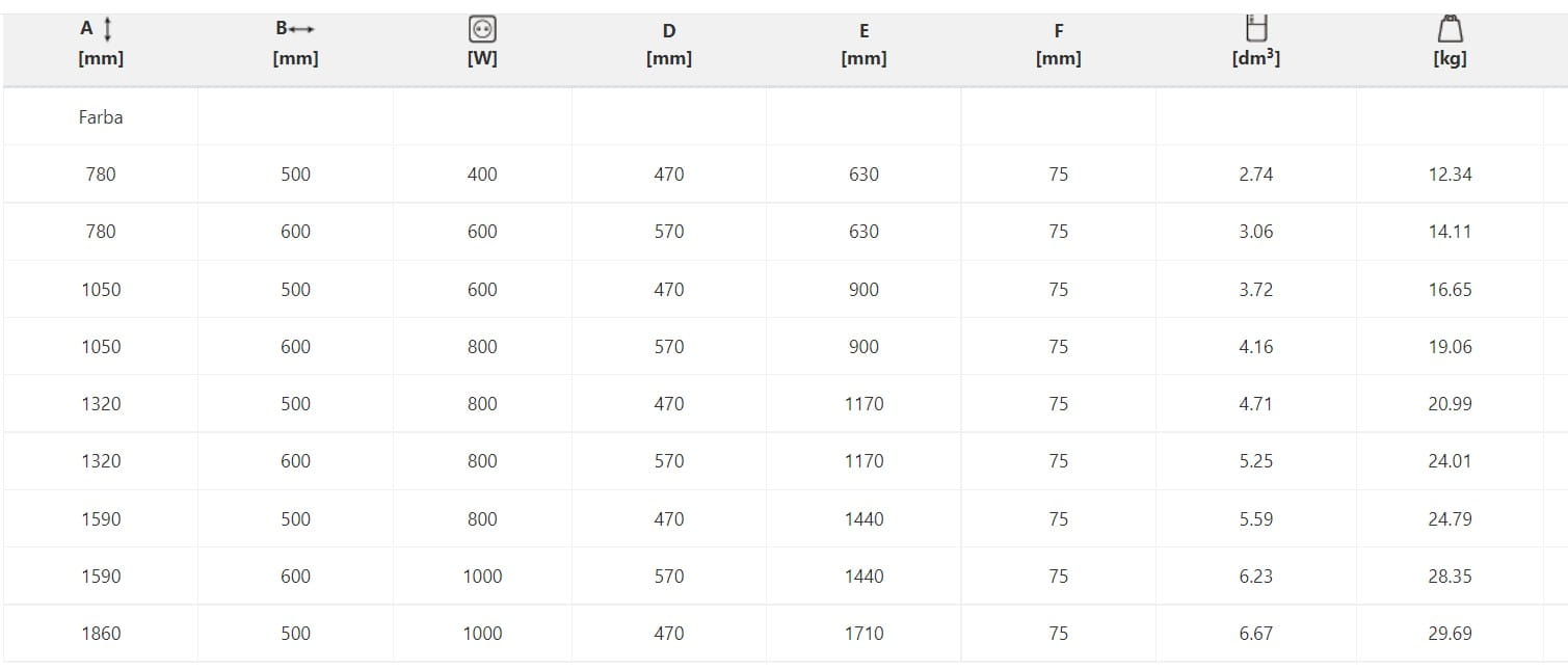 - Szerokość grzejnika [cm] 50