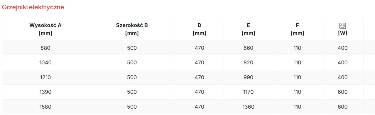 - Szerokość grzejnika [cm] 50