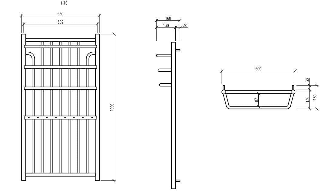 - wygięte w łuk trzy poziome rurki ułatwiają suszenie
