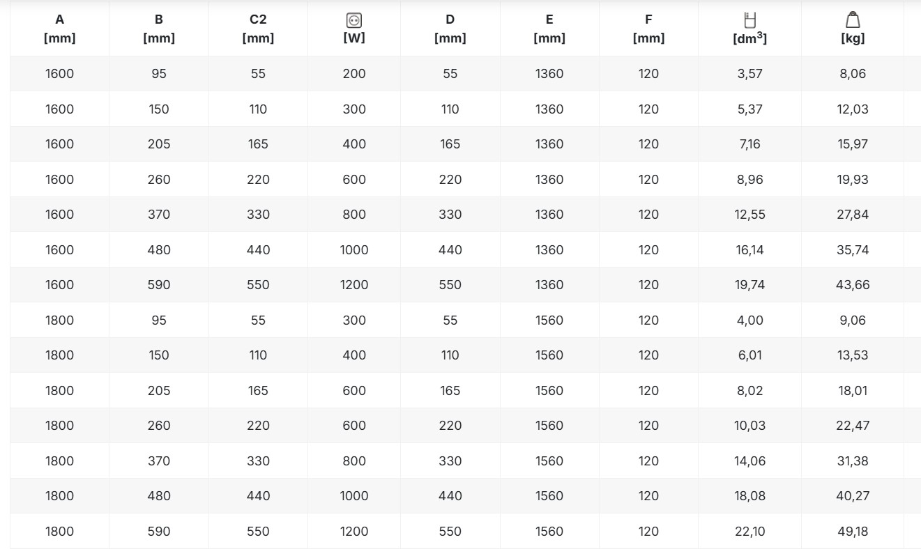- Wysokość grzejnika [cm] 180
