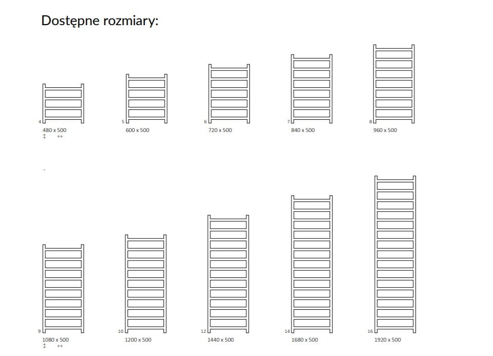 ✅ grzejnik wysoki na 48, 60, 72, 84, 96, 108, 120, 144, 168 lub 192 cm