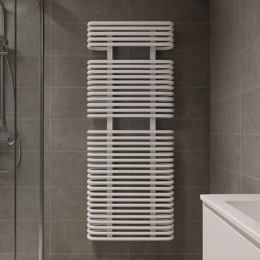 Pamela 118×50 cm to wysoki, smukły model o mocy 930 W (75/65/20°C), który potrafi znacząco podnieść komfort cieplny w średnich i większych łazienkach. Dzięki konstrukcji z kolektorów 3×4 cm i rur ø18 mm nagrzewa się szybko, a ciepło oddaje równomiernie, bez strat i miejsc chłodniejszych.