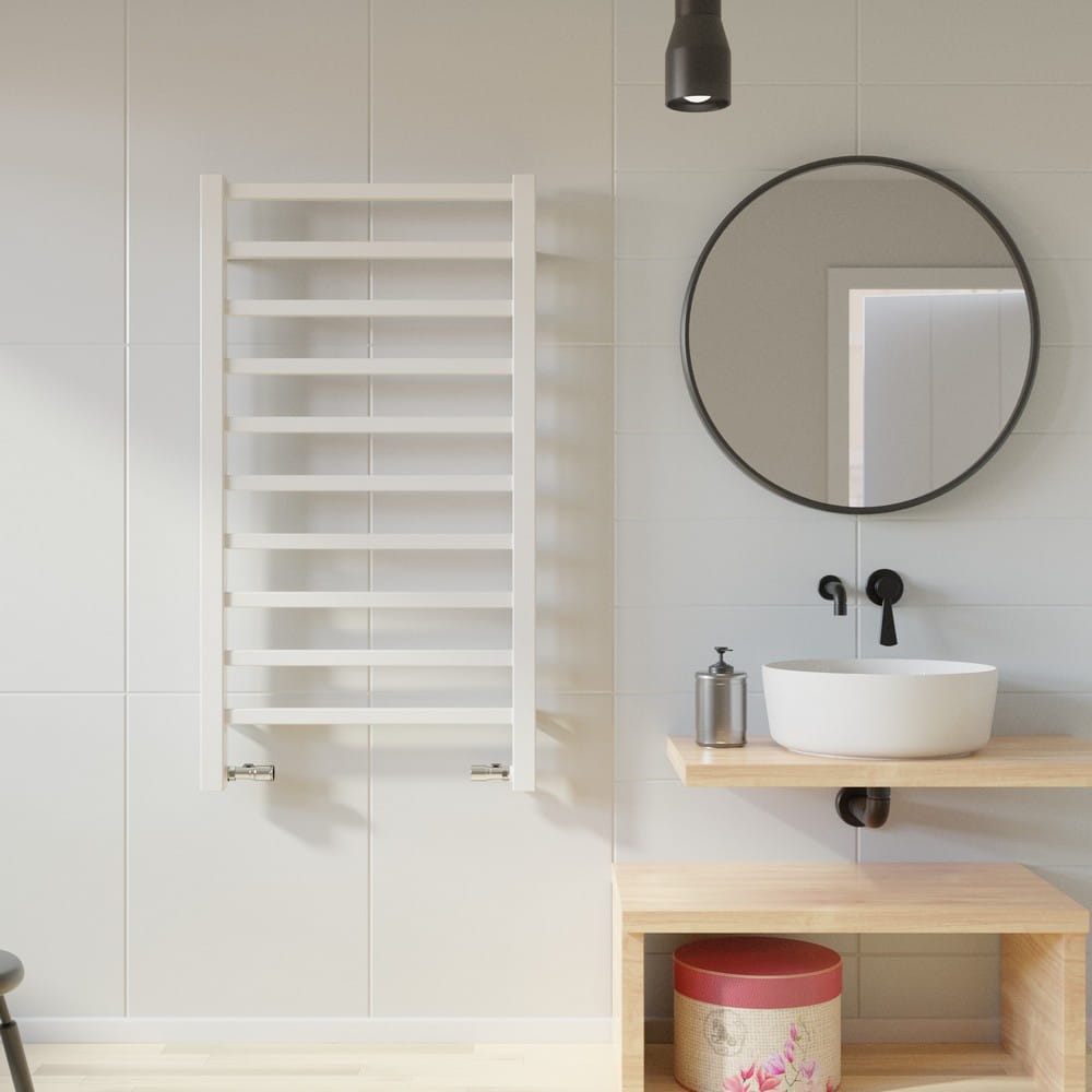 Grzejnik TELL to wyjątkowe połączenie jakości i stylu. Kolor biały podkreśla wyjątkowość tego rozwiązania. Dzięki niemu wreszcie twoja łazienka będzie ciepła oraz zyskasz tak potrzebne miejsce do suszenia ręczników.