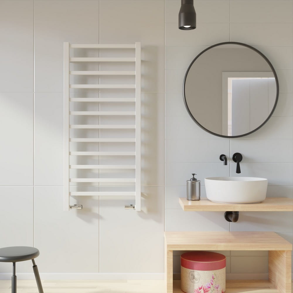 Grzejnik TELL to wyjątkowe połączenie jakości i stylu. Kolor biały podkreśla wyjątkowość tego rozwiązania. Dzięki niemu wreszcie twoja łazienka będzie ciepła oraz zyskasz tak potrzebne miejsce do suszenia ręczników.