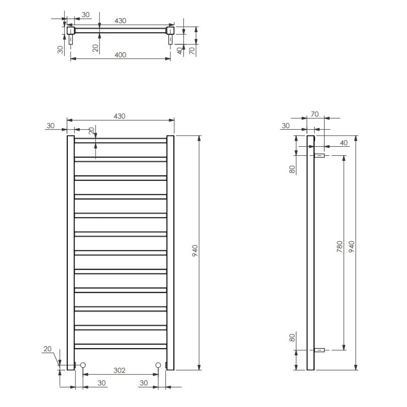 ✅ rozstaw podłączenia 300 i 400 mm