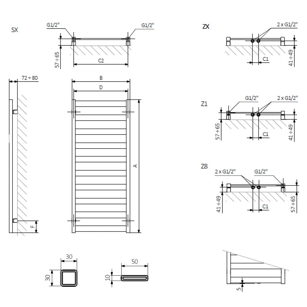 ✅płaskie poziome rurki 5x1 i kwadratowe pionowe rurki 3x3 cm