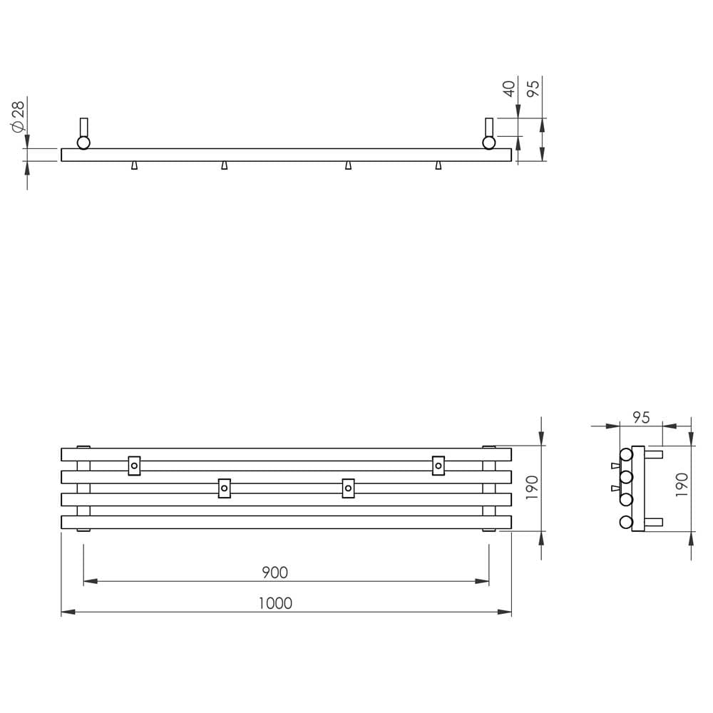 Grzejnik ozdobny ARIES 1 poziomy - 100 x 19 różne kolory