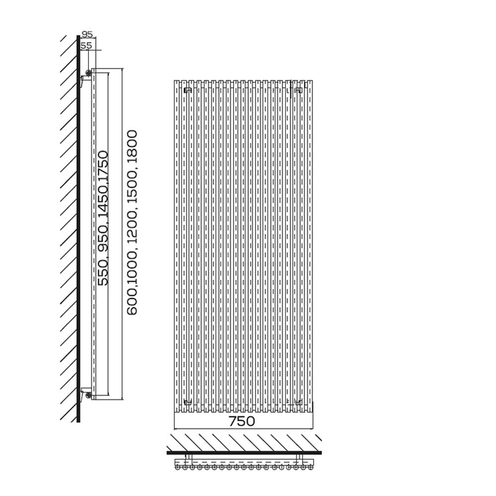 Smukła konstrukcja – pionowe kolektory o okrągłym przekroju ø 30 mm oraz profile pionowe ø 25 mm nadają grzejnikowi lekkości i subtelnej elegancji.