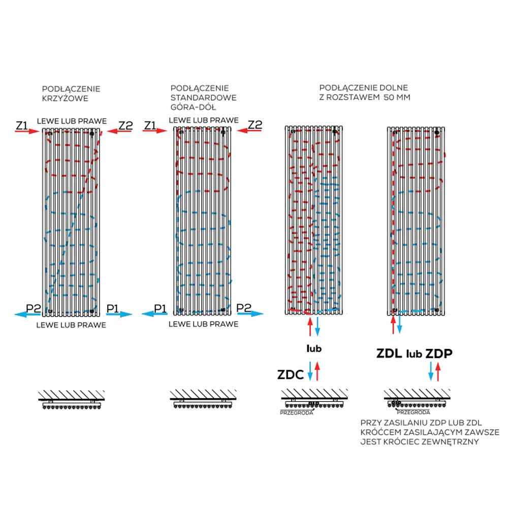 - Boczne – na wysokości równej wysokości grzejnika minus 5 cm