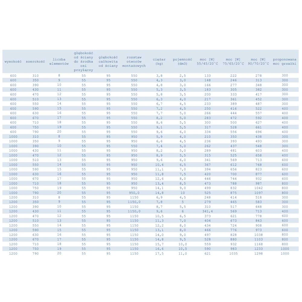 • W zależności od rozmiaru: od 220 W do 1510 W