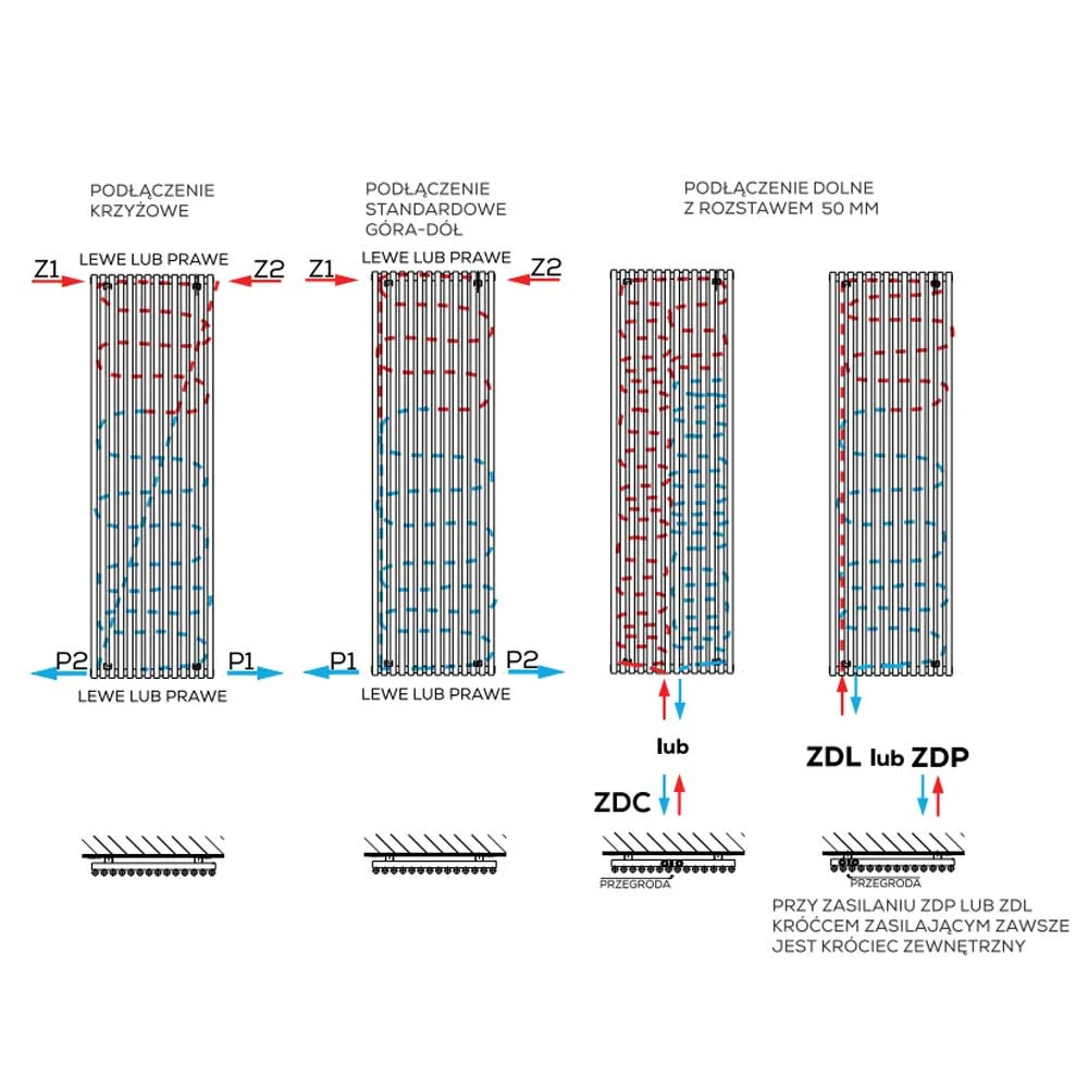 • Boczne – na wysokości równej wysokości grzejnika minus 5 cm
