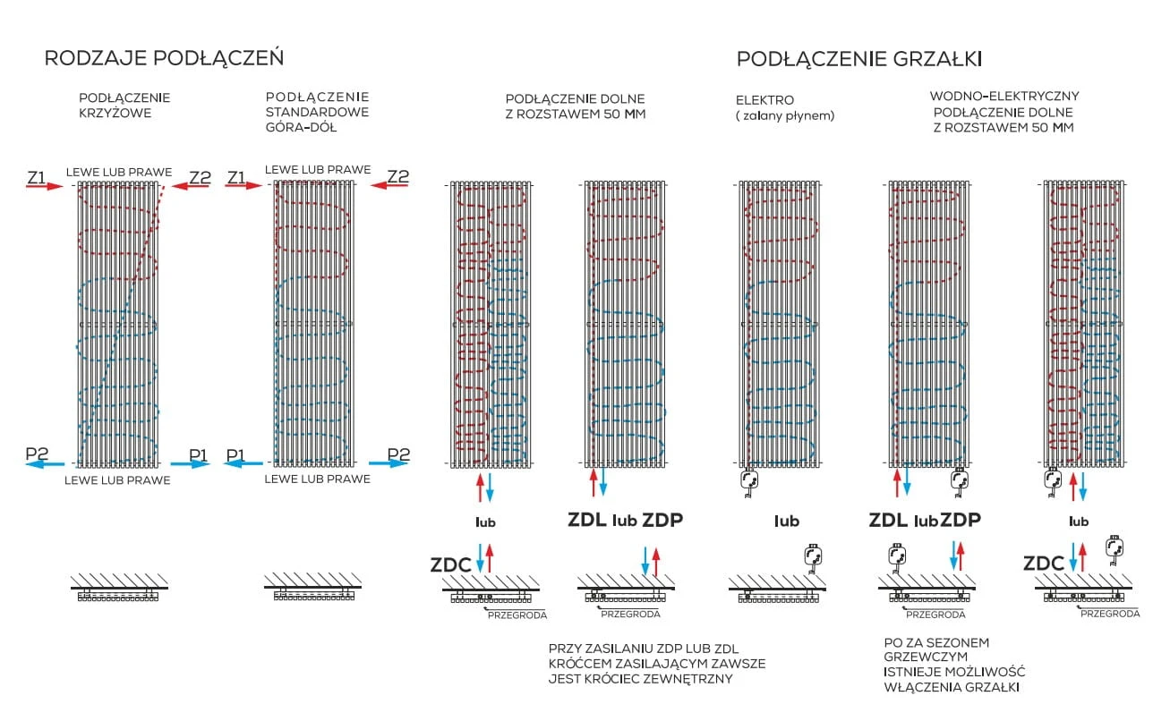 ✅ standardowo ma podłączenie boczne ale możliwe jest też dolne zespolone