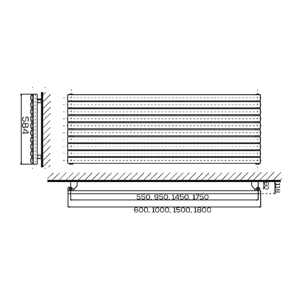 Grzejnik poziomy pokojowy RENE 58 x 180