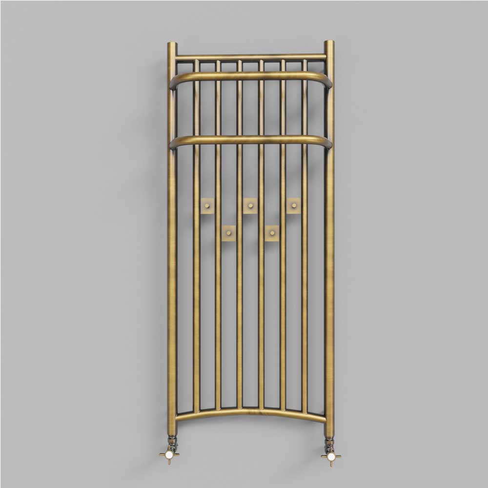 Grzejnik retro INDEO 1 - 80 x 43 antyczny mosiądz galwanizowany wieszaki