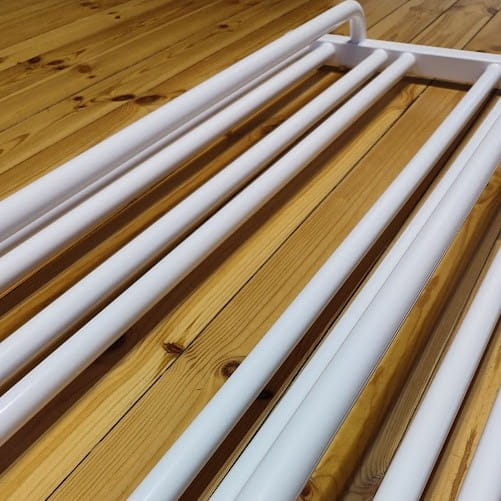 Wybierz spośród aż 191 kolorów RAL w wersji połysk, mat i soft, a także kolory specjalne, aby dopasować grzejnik do swojego wnętrza. Wysunięte rurki tworzą relingi, które umożliwiają zawieszenie ręczników, dodając funkcjonalności i elegancji.