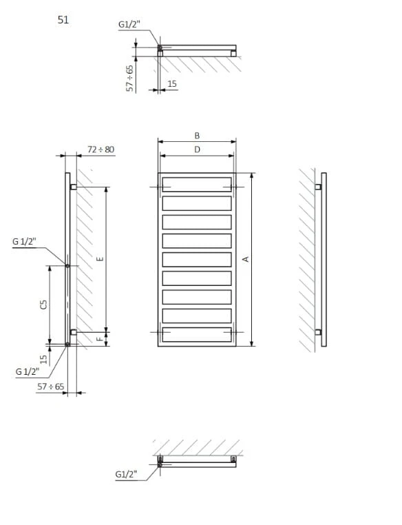 Prosty Grzejnik do łazienki GRID 183 x 50 drabinka