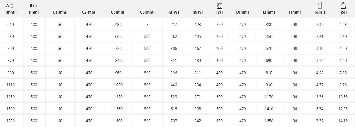 ✅ moc grzejnika zależnie od rozmiaru od 220 do 700 W⁣