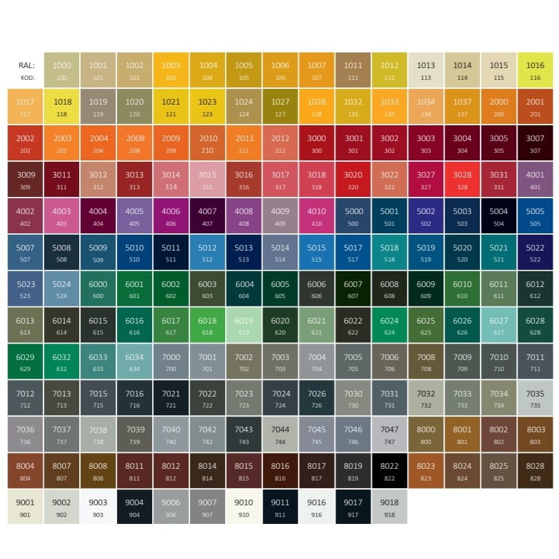 Wybierz biały matowy kolory palety RAL kolor palety RAL matowy kolory specjalne kolor premium (+25%)