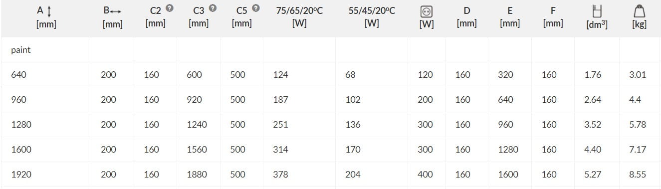 ✅ moc grzejnika odpowiednio do rozmiaru od 120 W do 380W