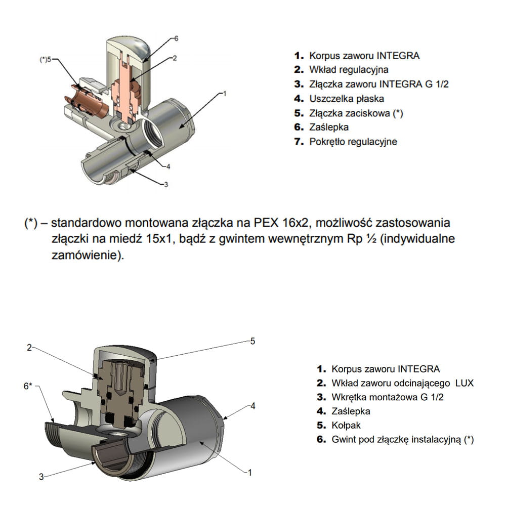 - Zawór regulacyjny Integra osiowy lewy lub prawy. Możliwość stosowania grzałki
