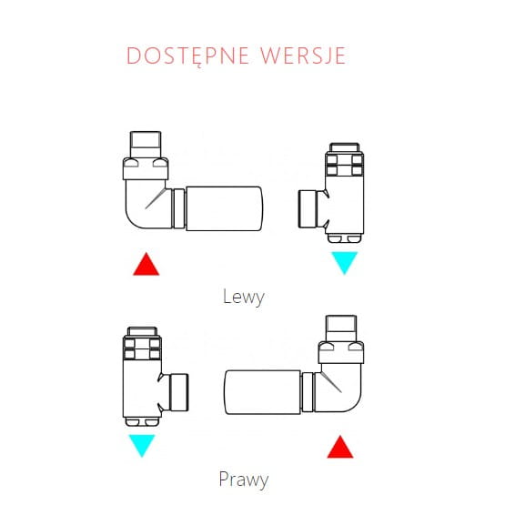 Zawór należy zamontować zgodnie z określonym kierunkiem zasilania i powrotu czynnika grzewczego. Konstrukcja zestawu umożliwia montaż grzałki na każdym z zaworów, ale ze względów bezpieczeństwa zalecamy aby znalazła się ona na zaworze odcinającym