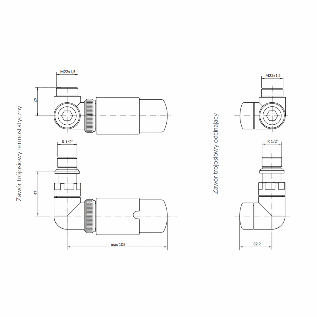 - Zawór trójosiowy termostatyczny