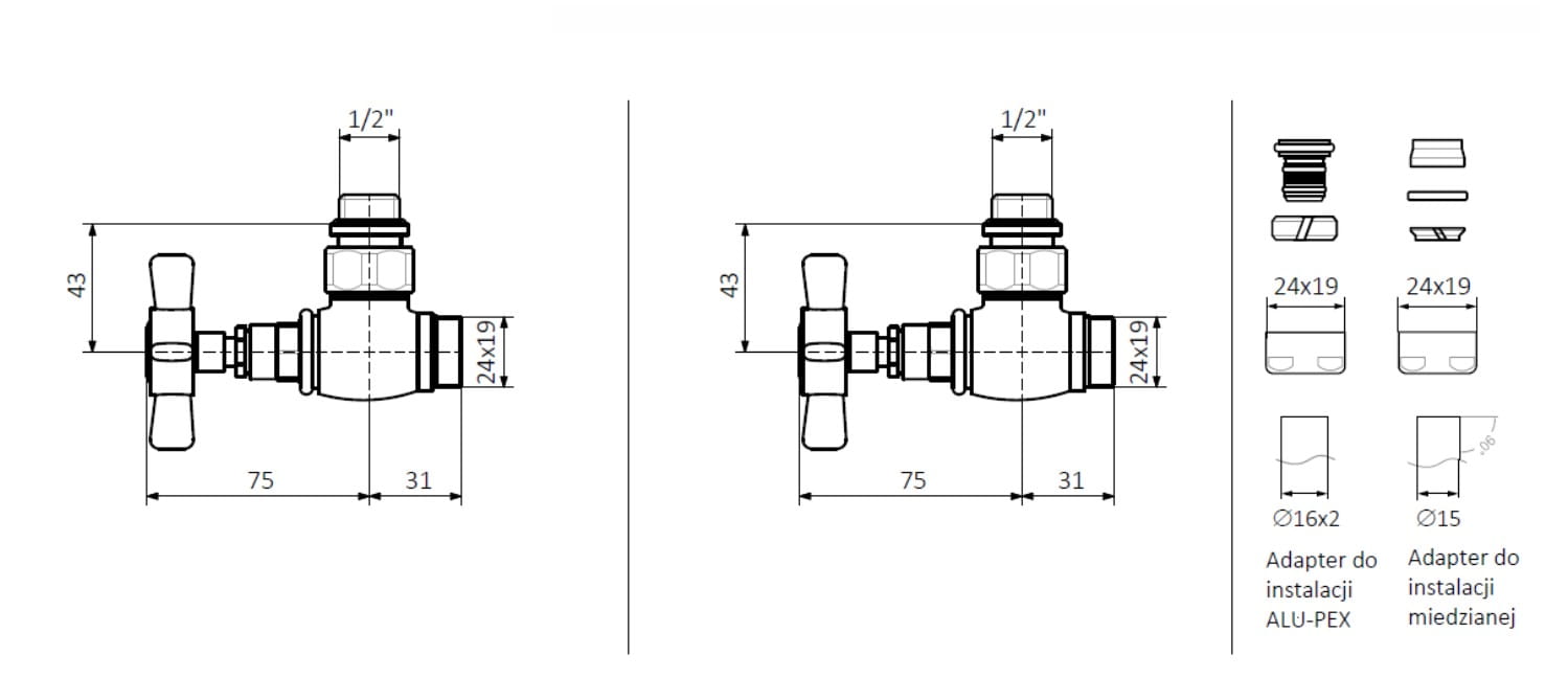 - Zestaw uszczelnień adapteru na miedź Ø15