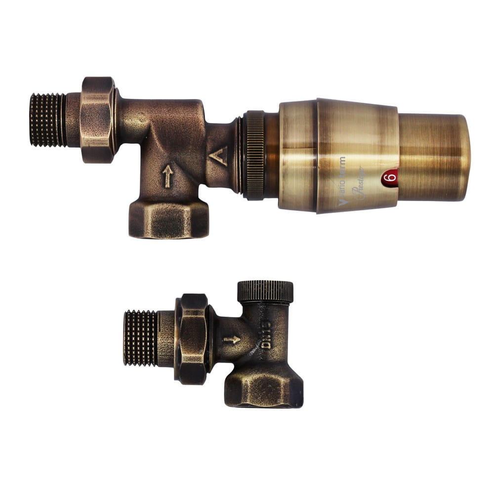 Zestaw instalacyjny „AXI" do grzejnika łazienkowego lub pokojowego idealnie pasujący do zasilania bocznego. W komplecie z katowym zaworem odcinającym i głowicą termostatyczną Prestige lub Piccolo - mała