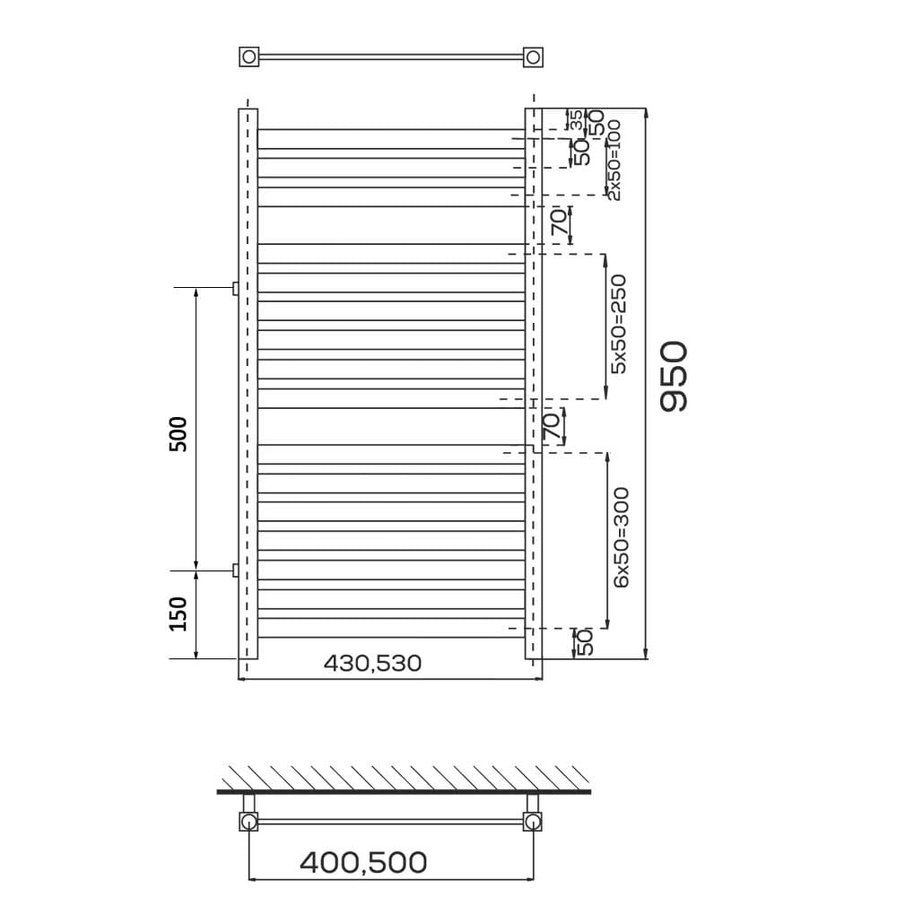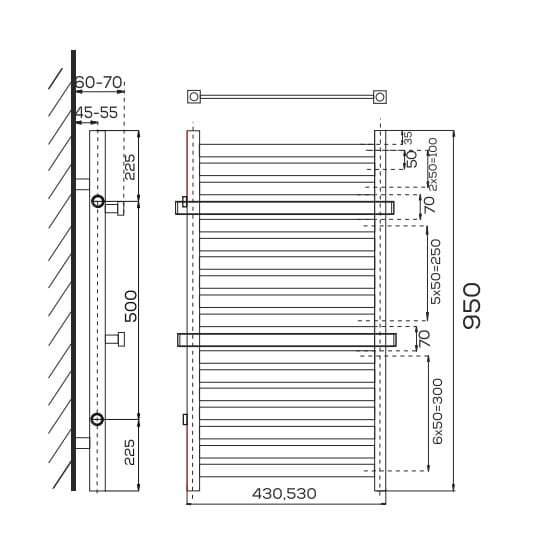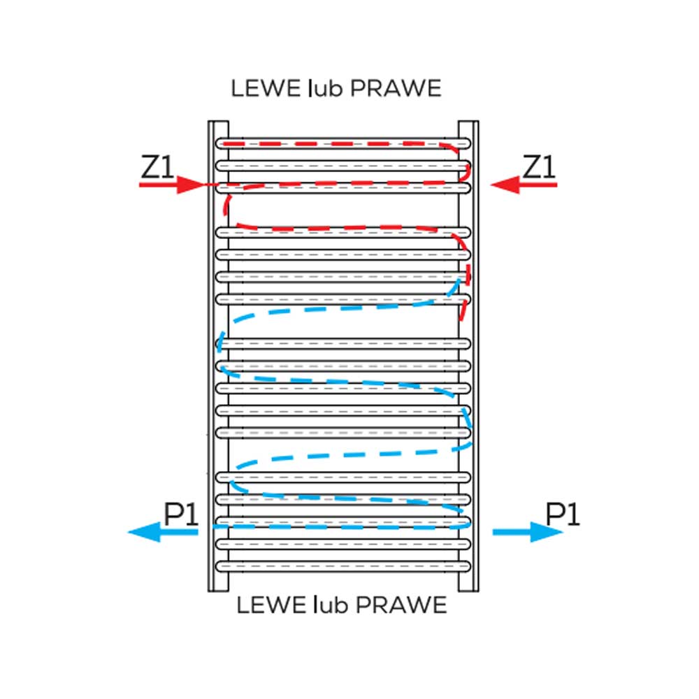 grzejnik Irma 95 x 43 z wieszakami ZB zasilanie z boku