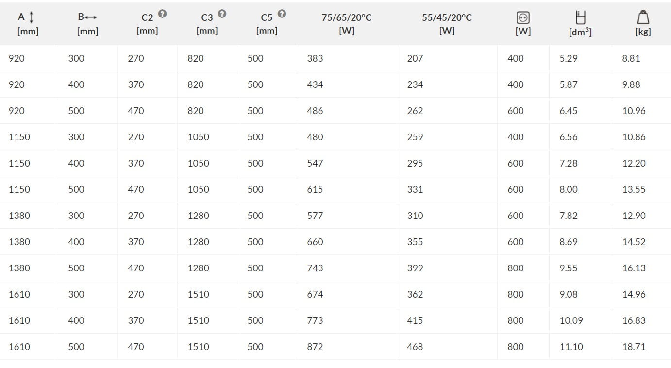 ✅ moc grzewcza zależnie od rozmiaru od 380 do 870 W