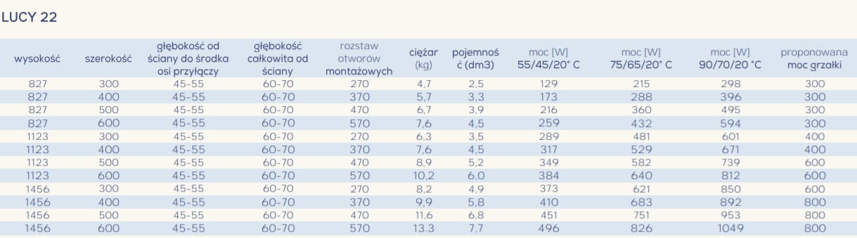 Pozostałe wymiary i rodzaje grzejników LUCY znajdziesz tutaj